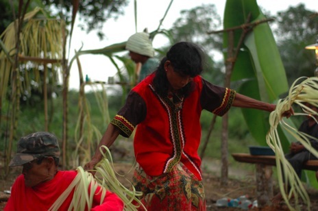 Drum and gong are played in a pair and only during ritual performances. Because it is a taboo to sound these instruments outside of such occasion for fear of sagman (i.e., because the playing always carries with it some kind of risk that can harm the player), the takumboq serves as a substitute when accompanying simulations of ritual dances in non-ritual occasions.