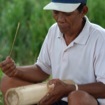 Both drum and gong and bamboo struck zither have the same repertory. The drum and gong rhythm serves as a prelude to a ritual performance and is called binaylan (i.e., in the style of the baylan). This is sometimes described as tinaga-untod (in the style of the mountain people). The rhythm is symbolic of authority that ritual represents. In the first part of ritual, rhythm is felt as “hard” as this corresponds to the aggressive, war-like dance gesture that accompanies the killing of the sacrifice.