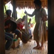 During the ritual intermission as the pig is cleaned and cooked, participants take turn in dancing, especially mimicking the medium’s dance that they had just witnessed in the preceding ritual part. There are a number of “secular” dance rhythms played during these moments, the more famous ones are minandaja (in the style of the Mandaya people) and the feminine style (simbatan and pinandanggo). The latter uses the handkerchief. The rhythm that accompanies the medium’s dance in the 2nd part is perceived to be “soft” (beteng-beteng, sometimes also referred to as sibey) and this is played particularly when the medium elevates (bajaw) the cooked food offerings. All these dances express human joy and liveliness.