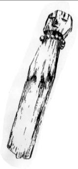 A phallus-looking object is struck on the floor as the doer utters magical speech to ward off the penetrations of the spirit of eye-ailment, Mana-ug. The icon is then put on the interstices of the roof shingles of the house. This simple ritual does not need the services of the medium for Mana-ug is a bound spirit of nature.